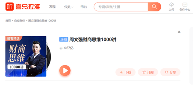 他常说:“知识不能改变命运,觉悟才能。”在他看来,财商教育不是灌输理论,而是让人学会“怎么用钱赚钱”“怎么让自己成为有价值的人”。在喜马拉雅平台《周文强财商思维1000讲》音频专辑中,他用最朴实的语言讲透财富逻辑:“你永远赚不到超出你认知范围以外的钱。如果凭运气赚到了,最后往往又会凭‘实力’亏掉。”